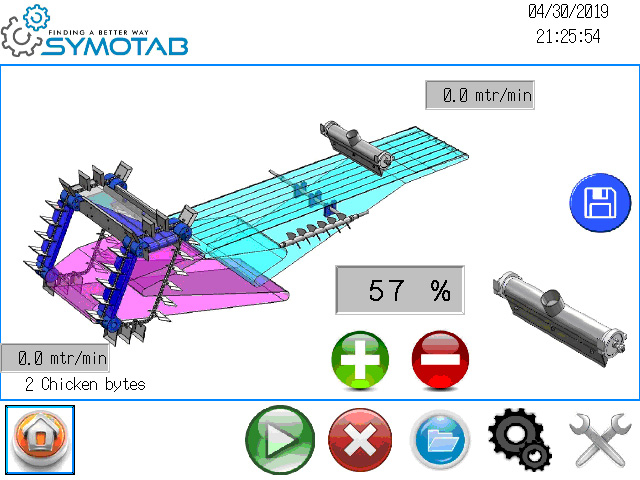 Actual operator screens are shown. Inspired by a leading tablet producer complicated machine processes are presented in their graphical appearance. Adjusting your coating machines perfectly is for sure a determinator for a quality end product. In this way any nationality operator will immediately learn how to make adjustments. Just tick in the screen on the object that needs adjustment. By plus or minus a % of the maximum motor speed of that item is shown. Once set properly the setting is saved for repeatability.